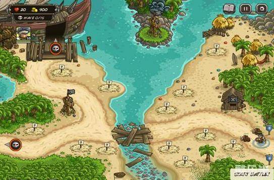 小编心得:注意,本图有两个防守点!一个在右边,一个在正下方,就不是那个铺满石子的小道。本图之中不是只有开始的两个敌人出现口,但凡有水的地方都是敌人会出现的地方。本图中的河道会出现一个龟甲船,该船会秒杀地图上的卡位小兵,所以玩家们可以把箭塔摆在河道附近,升级河道中的那个海盗瞭望台的技能,同时也可以用火雨消灭。除了龟甲船,到了游戏的后半段还会出现一种血量超厚的海螺,它不但血厚还能让攻击塔失去行动力,这还不算,当它遁地移动后还可以瞬间回血,这个能力太逆天了,必须集结众小兵群殴灭掉它!