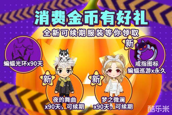 活动期间,玩家消费金币累计达到相应数量后,则可领取“万圣节宝藏”!