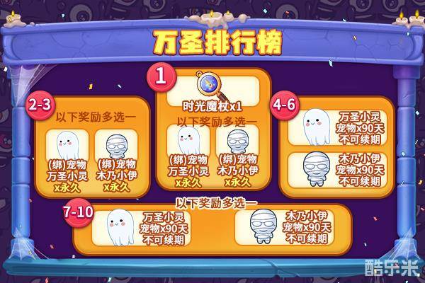 活动结束后,累计消费金币最高的前10名玩家,将获得“万圣排行榜”奖励!