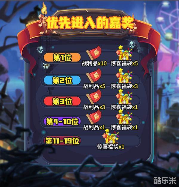 除此之外,每日00:00都会为每个队伍内“防御力量”最强的50位玩家发放“战利品”奖励,无论队伍是否成功抵御魔王的攻击,位于排行榜前50的玩家均能获得额外战利品。根据您累计获得的“战利品”数量,可领取特别奖励: