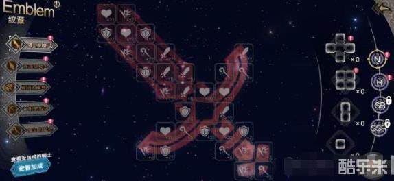 纹章材料基本靠刷外传的,用右边的图形填左边的团案,并不要全部涂满,只要达到右下角的突破值就好了,图案涂满和不涂满加的属性是一样的。