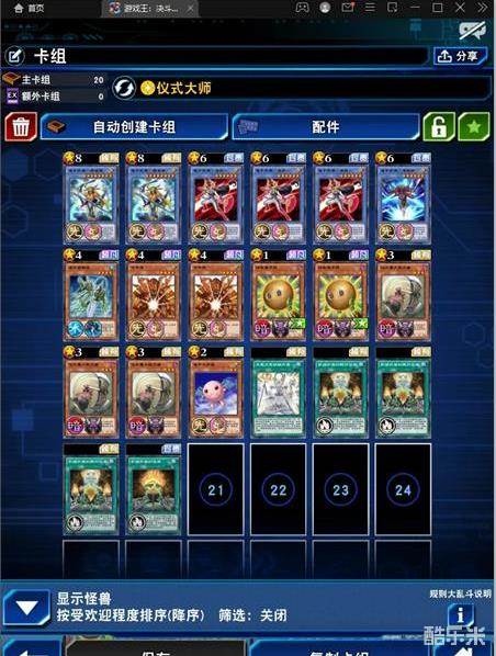 总之,目前仪式魔人+纯电子天使的组合有T2中游强度,月初上王需要一定运气,但也是不错的选择之一,参考构筑如下: