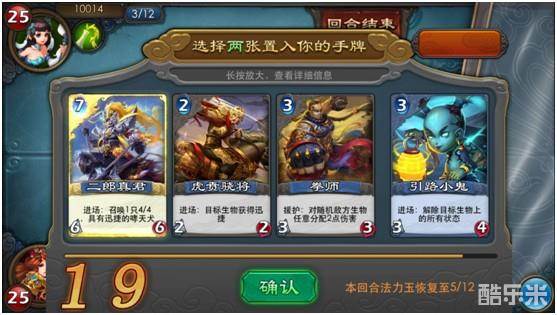 你也无需使用灵玉来增加法力上限。每个回合开始时,你会固定恢复一定数量的法力,这些法力在回合结束的时候不会清空。只要积攒几回合法力,你很快就能打出高费用的卡牌。