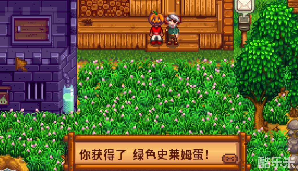 完工的那天,马龙会过来和玩家交谈,并且交给玩家一个【绿色史莱姆蛋】。