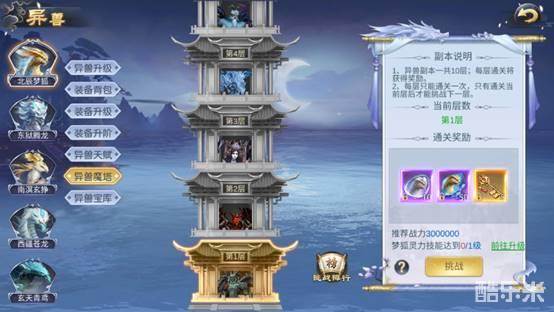 异兽塔一共10层,每层通关后都可以获得奖励。