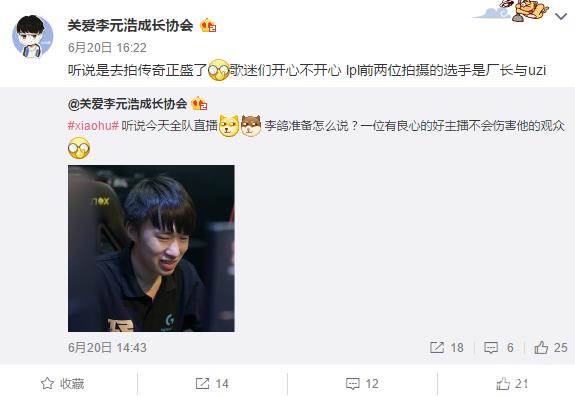 另外关于微博中提到的小虎拍摄传奇正盛,目前也引起了广泛的讨论,如果消息为真,那么小虎将是继UZI和Clearlove的第三位拍摄传奇正盛纪录片的LPL选手。