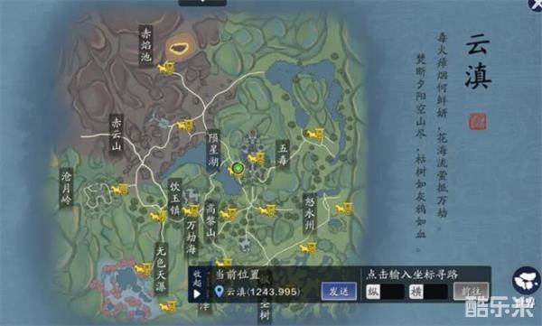 云滇风月奇遇需要到云滇陨星湖:1243,995坐标找到信使解锁。