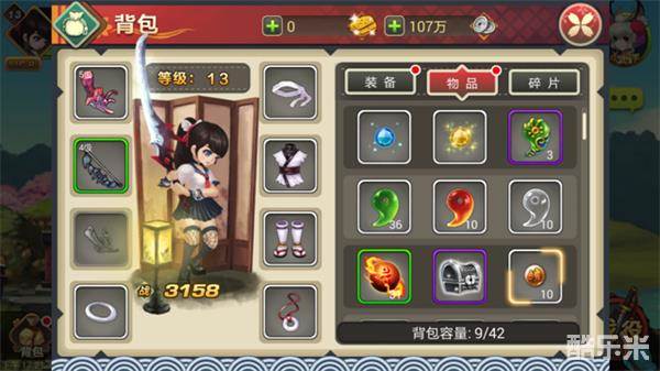 背包界面最右侧有3个标签,分别为装备、物品、碎片。一目了然,方便我们查找想要的物品。