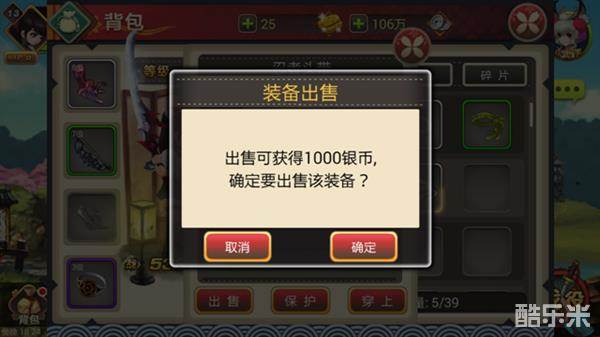 【背包里面的装备可以出售、物品碎片可以合成,嘿嘿!】