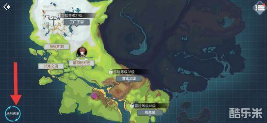 4、进入界面后,会发现左下角有一个地形恢复按键。玩家选择自己想恢复的区域,进行地形恢复即可。而恢复后,除了地形,魔物。居民初始化外。其他内容均不改变。