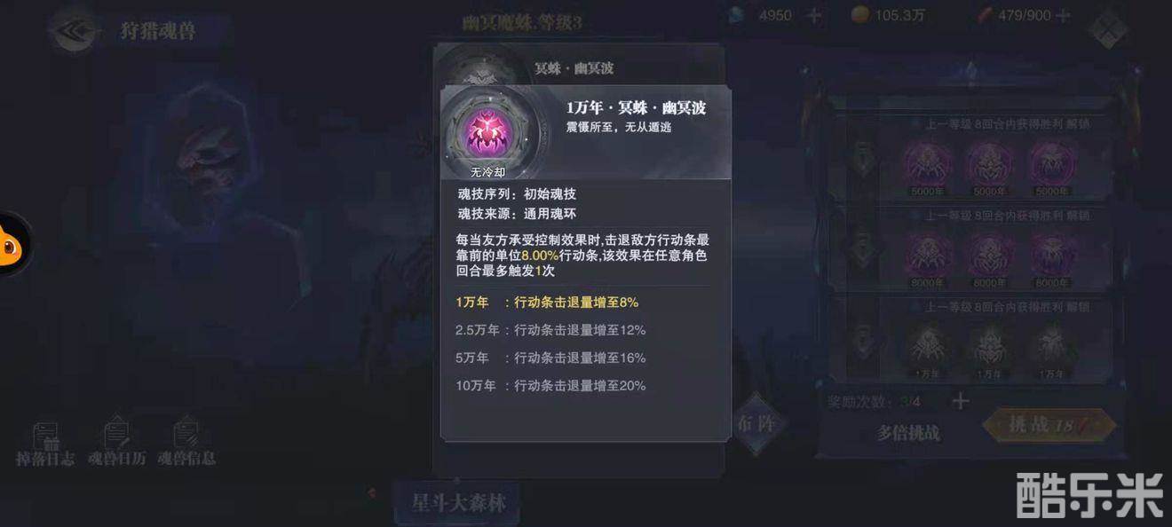 幽冥波的效果决定了该魂环pve完全不建议携带的属性,又是一个pvp魂环,适用范围我现在能想到的是在你跟敌方速度差不多但是对面先手的情况下,对方先手控制住你的角色,随后击退对方下一个行动的人,如果击退的是拉条,那么原本你速度比他慢的拉条就可以行动,从而起到一个反客为主的情况。