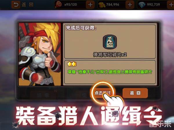 对自己运气真没什么信心的主公也不要气馁啊!就算咱们幸运值真心不高我们也有脚踏实地获得装备碎片的方法!在冒险模式中,无论是剧情战役还是经典战役都有极大可能会出现装备的碎片掉落。只要每天坚持扫荡,凑够合成装备所需要的碎片数量也真是分分钟的事情!扫荡次数要是用完了怎么办?不要紧!我们还有赏金任务!看到那个叫莫文的家伙了吗?就是他身上带着大量装备碎片!武将们,为了装备快向他冲锋!