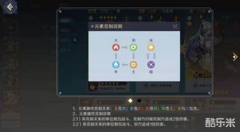 2、神角技巧中英雄的属性可不相同,他们分别是属于土、水、火、风、光、暗,这些属性有着相互克制关系,具体的克制关系,玩家可以看上面的图,展示的非常清楚,当玩家使用克制关系的时候会有加倍伤害的产生,小编推荐主站英雄选择品质更高、培养更多的英雄,支援英雄主要选择技能多的阵容给,玩家可以输出配控制,控制配治疗。