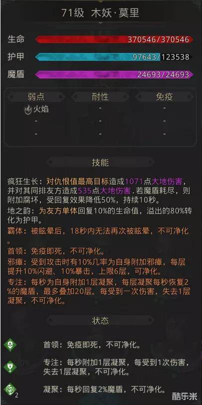 但是好消息是,他的邪瘴光环是可以被净化的!所以这里推荐大家,物理队带枯萎之心,法队带黎明骑士,用来净化他的邪瘴光环,打起来就会轻松许多啦~