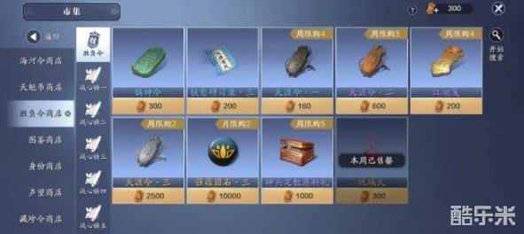 3)胜负令商店:加入了道具琉璃火以及5级战心铸,但是这个天芒赛季不会产出5级战心铸。必换:琉璃火,江湖笺,天涯令3*2,各级战心铸。琉璃火每周产出基本固定,必须换满,前期每件伙伴装备都是实打实的提升。选购:天涯令2*3,强蕴圆石,神兵定数质料礼。