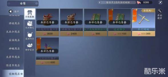 宠物商店:每天行侠装备会刷新半折的猫咪行囊,心法,神兵。优先买紫色/蓝色的行囊和心法,可以让猫咪见识到更多的风景认识不同的伙伴。