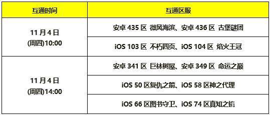 我们将于2021年11月4日10:00点对安卓(435、436)区、iOS(103、104)区,进行数据互通,预计维护时间约为2小时。2021年11月4日14:00点对安卓(341、349)区、iOS(50、58)区、iOS(66、74)区,进行数据互通,预计维护时间约为3小时。建议小伙伴们及时下线,待维护结束之后再来愉快的玩耍哦~
