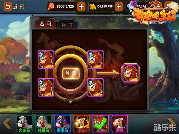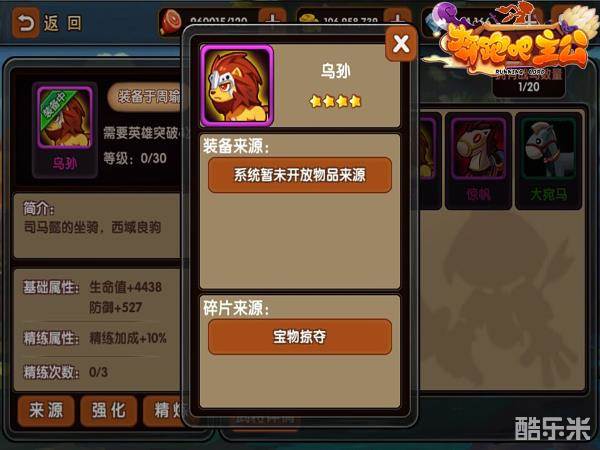 相较于三国乱世的名驹难求,咱们《奔跑吧主公》中名驹的获得方法可就简单了许多。每一匹宝马都是有四块碎片组成,而这四块碎片一共就只会出现在两个地方。其一自然是依靠运气的招募界面,战马的碎片会和装备碎片一样随机掉落。多多尝试就能把Q萌可爱的战马牵回家啦。