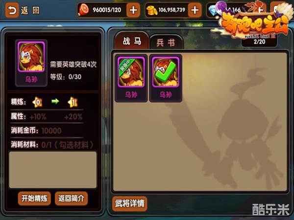再好的战马也是需要好好饲养才会膘肥身健,四蹄生风,所以,在获得宝驹之后我们还能通过强化和精炼来提升战马的基础属性和精炼属性。相较于武将的突破升级,战马的等级就低得多了。主公们每天轻轻松松打劫一下其他主公,十天半个月不到,就能看着骑着生龙活虎的极品良驹的武将们驰骋沙场了!