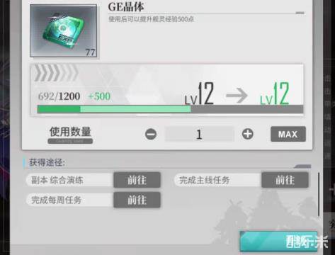 阵容凑齐之后还需要进行升级和突破,升级需要消耗经验,如果战斗经验不足那么就需要使用道具GE晶体了。GE晶体可以提供大量经验,使得新获取的角色可以提高到能出战的水平。舰灵的突破可以增加各项属性的成长,成长提高了,自然升级之后获取的属性就多了。舰灵的突破需要消耗的是同名的舰灵卡,所以即使是凑齐阵容了,也需要经常进行招募来获得突破需要的材料。