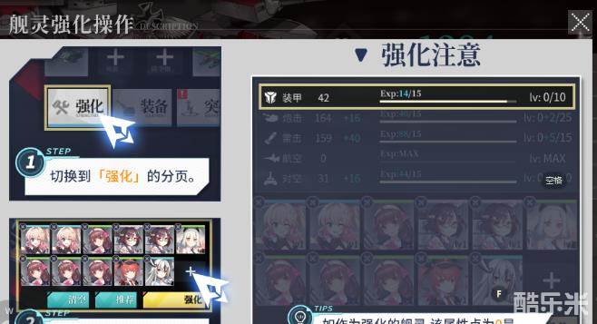 舰灵强化这个玩法会在指挥官等级25的时候解锁,所以说也是要一定等级支撑的,玩家可以通过推图和任务来做好快速的提升。在有了等级之后进入到舰灵的界面中选择最喜下方的强化即可开始进行操作。