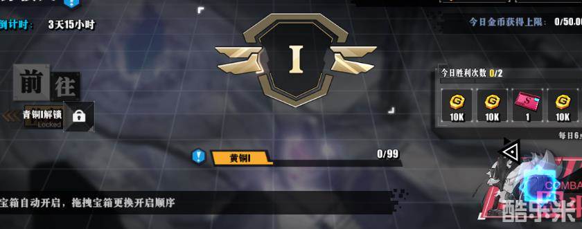 在这里可以看到积分模式的玩法就是一个随机挑战的玩法,在中央位置可以看到玩家的段位,这个段位初始就是一个黄铜的阶段,随着玩家获胜次数的提升,那么会获得升级经验值,后续就可以直接提升段位了。