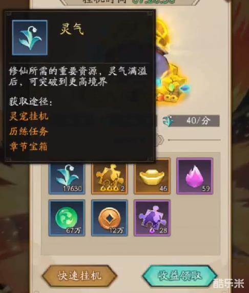 第一个途径可以通过挂机来获得,挂机的话在游戏中是分为两种的,其一就是常规的章节挂机,在挂机之后可以领取一定的奖励,其中就包含有灵气这个资源。随着章节的提升,获取的资源奖励也是会越来越多的。其二就是灵宠挂机了,灵宠挂机的话要等级二十的时候来开启。在开启之后,灵宠会周期性的获得资源奖励,这个奖励和灵宠的品级有关系,品级越高,获取的效率也就越高的。