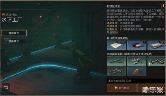 1、区域每日行动-水下工厂在红水湖区域开启,进入水下工厂需要采集等级达到110级。
