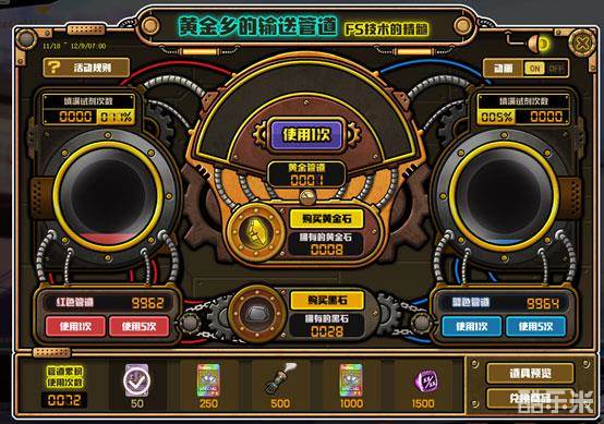 管道里输入的试剂达到100%时“填满试剂次数”增加1次。红色管道和蓝色管道填满试剂次数都是1次以上时,填满试剂次数各减少1次并获得一个“黄金管道”。在拥有“黄金管道”的情况下,使用黄金石可以激活黄金管道,并获得更高级的道具。每次使用管道累计“管道使用一次”,经过下方5个节点可以获得不同礼物。使用红色管道和蓝色管道时有概率获得黄金兑换券,黄金兑换券可以用于兑换商品。