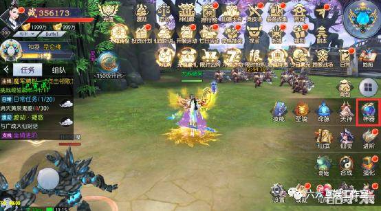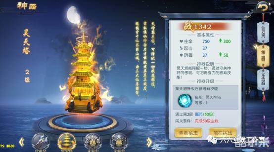 5、昊天塔、昆仑镜、九黎壶、女娲石等通过挑战守关神将进行升级,挑战成功则顺利升级