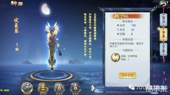 3、伏羲琴对应变身系统,升级将跳转去天神系统