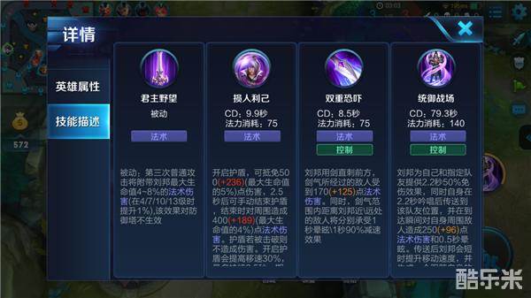 第三次普通攻击将附带刘邦的最大生命值的法术伤害。该技能让刘邦全部装备出肉也能具有相当不错的伤害,当然,刘邦需要适当提高攻速。