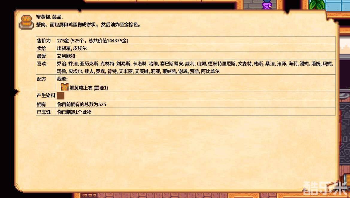 以上就是关于星露谷物语蟹黄糕的攻略了,当玩家和威利的好感度达到6星时,基本上也到了游戏的中后期,差不多不缺钱了,这个时候我们就可以直接触发威利的六星剧情,从而在格斯的酒吧中进行购买蟹黄糕,这个时候建议玩家可以多买点,不要舍不得,后期都是靠蟹黄糕来提高我们的移速的,如果觉得麻烦,也可以通过吃香辣鳗鱼来提高移速。