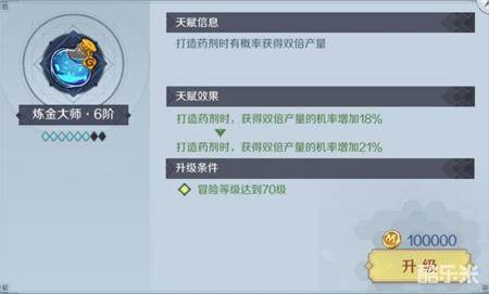 比如无中生有和炼金大师,一个能使打造药剂时有几率不消耗药材,另一个能使打造药剂时产出双份。