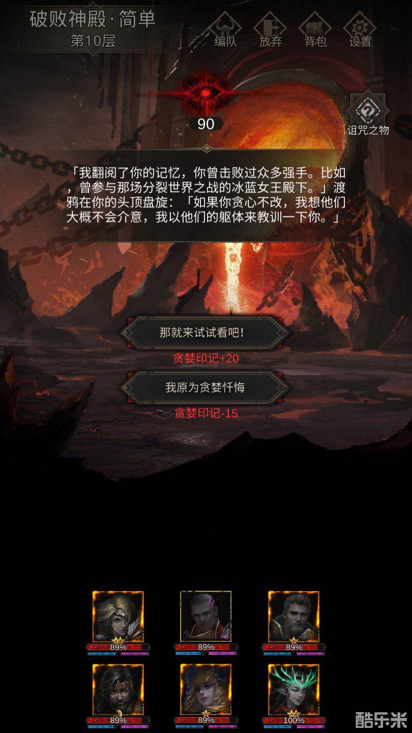 10、【每10层BOSS】:挑战则贪婪+20诅咒+1,跳过则贪婪-15