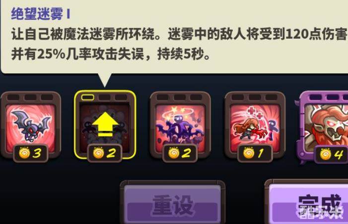 绝望迷雾这个技能十分强力,不仅有一个十分可观的技能,还能迷惑敌人,满级攻击失误的概率可达到75%,十分推荐大家去点这个技能。