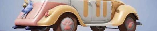 第二款是吉普车的皮肤,名为萌喵橘座,外观采用的是经典老爷车外形,车头展现出的效果是个可爱的猫脸,下方蓝色蝴蝶结的点缀,让它更加的可爱,尾部还有一个喵咪的尾巴,和前一款相比,这款也十分的吸引人,相信喜欢喵咪的小伙伴们一定会喜欢它。