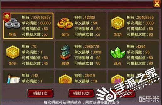 6、除金币外,其余所有资源可捐献次数都有一定数量限制,但每期活动会有随机3种资源为热点资源,可捐献次数不受限制。