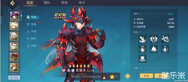 1.黑暗克里夫是公测开服后首个限定卡池的角色,也是之前不删档测试中最强的SSR,拥有独一无二的变身技能,也是目前唯一一个黑暗属性的英雄。