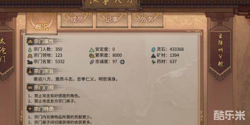 好,只要我们知道了这一点,那么,宗门玩法经营时,渐渐走向破产的问题也就迎刃而解,下面说一些比较精简的宗门经营小攻略。