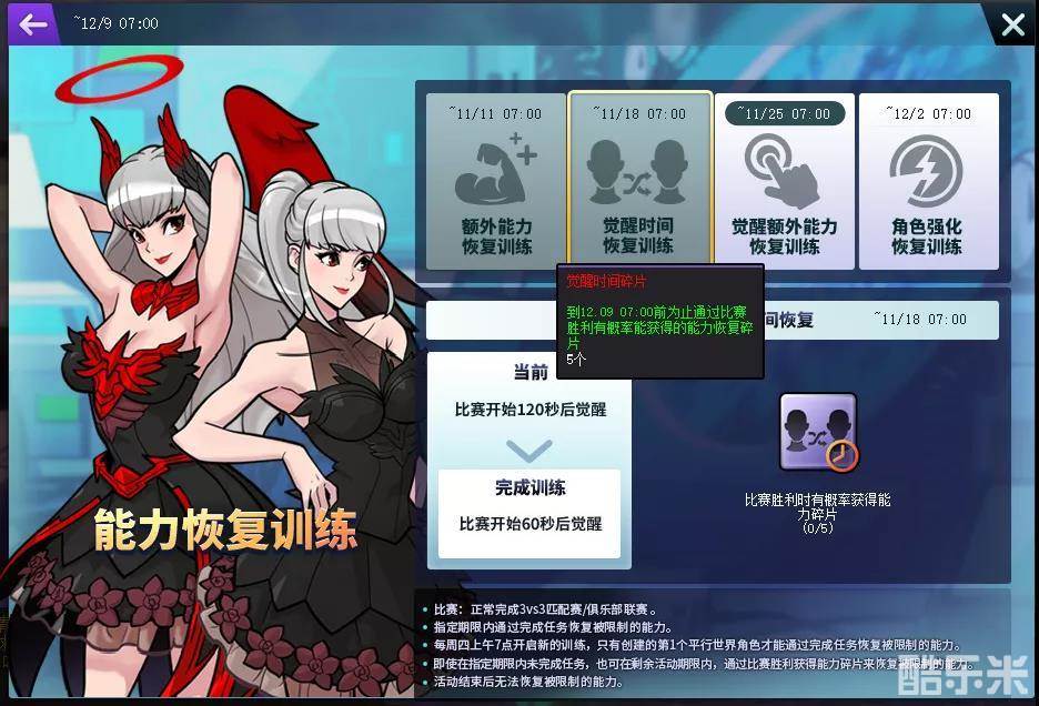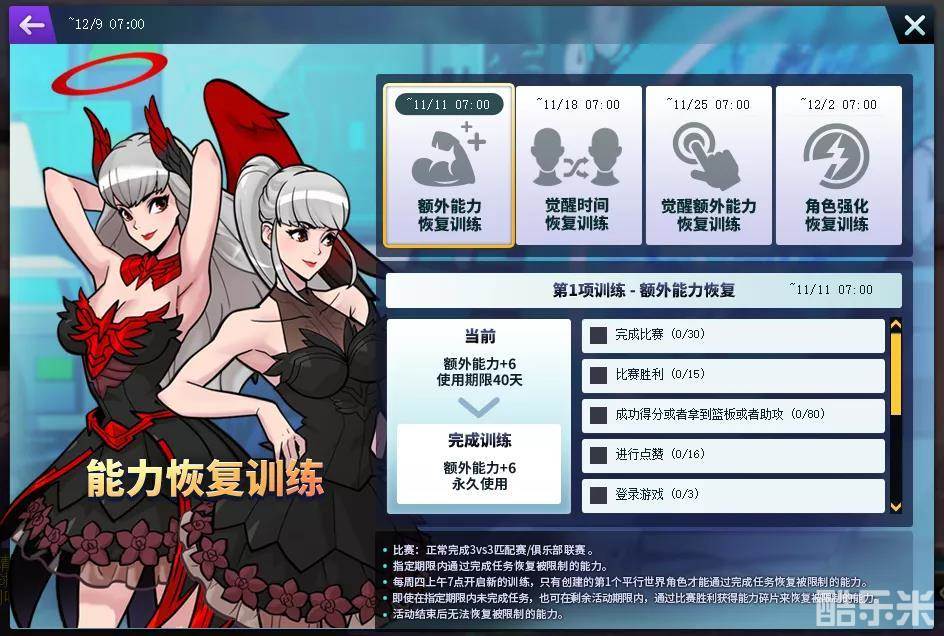 由于角色刚来到平行世界,还非常虚弱~需要通过“能力恢复训练”来恢复自身实力。