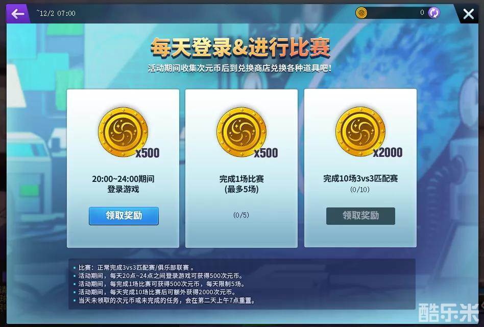 场次相关任务需进行正常结算的3V3匹配赛俱乐部联赛。