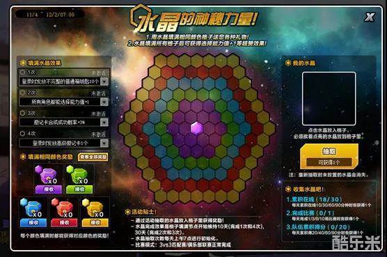 填满水晶获得的效果是格子填满节点开始维持十天(一次和四次奖励)和三十天(二次和三次奖励)。