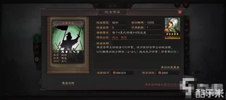 其中关羽算是比较契合这个技能的武将,自身的技能威震华夏就是非常强势的主动技能,再加上横扫千军或是所向披靡,还有这个士争先赴,关羽的输出还是可以继续提升。当然最合适的还是张苞和关兴自身,这两名武将自身技能互补,任意一名武将学习士争先赴都是可以的。