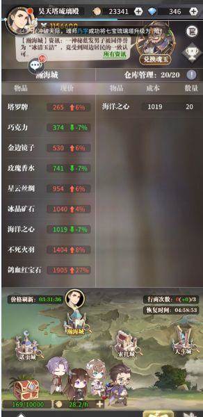 4、为了保证每一次买进,换去的城市都是赚魂玉最多的,就需要联盟或者是找几位一起玩的,私下交换城市价格,最好是建个群,当价格刷新后,大家都把各自己所在城市价格发到群中,大家看着价格买卖,就能做到稳赚不亏。(此方法并非出自本人,而是盟中其他与我相同经历看到我在群里发图提出的建议,最后由我执行而来),此方案目前为最优方案,望大家多买多赚,早日成为商榜排名第一。