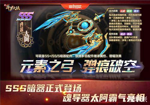 配件系统:SSS暗器属性全面提升,比SS+暗器更为强大。此外,SSS暗器可以将SS+/SS暗器作为配件,配件品质越高,提供属性越强力,SS+暗器还能激活6级配件技能效果。