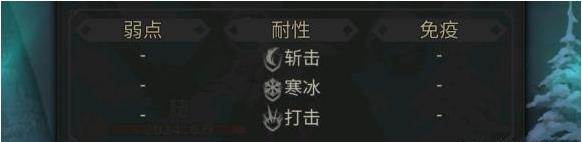 在怪物面板有抗性标注,默认为0抗性,弱点为-25抗性,耐性为50抗性,免疫为100抗性。