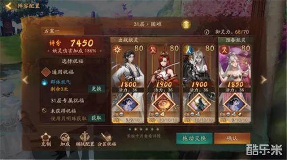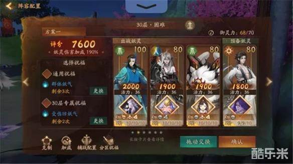 阵容一:干将+输出妖灵+莫邪+会心挂件/其他辅助挂件妖灵。这一阵容适用于低阶莫邪时期,它可以在前35层塔内发挥作用。阵容二:干将+莫邪+洛神+开场会心挂件,拥有高阶莫邪后,借助妖气优势催化莫邪爆发,适用于从极之渊大多层。阵容三:风伯(星盘)+莫邪+白泽+干将,借助莫邪150%妖气以上会有二段伤害的特性,快速攻克20、30等层。