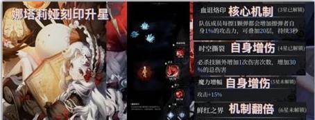 3星的技能是擦弹加全队攻击力,可叠加20层,理论上只要技术上合格就可以做到20%的攻击力加成常驻可以说属于挂件魔女派系的技能;4星为加自身大招伤害30%可以说提升不大;5星技能加自身攻击力15%也算是提升不大;6星技能就不一样了直接让3星技能翻倍,也就是常住40%的攻击加成,可以说是神技了,只可惜要6星作为sr角色想6星不是氪佬还真只能随缘。所以刻印性价比:3星>6星>4星>5星。因此正常玩家有一只娜塔莉娅就可以带上放在后台给队友加攻击力,四星五星意义都不大,六星虽然很强但是成本太高还是属于氪佬才能体验的,其他玩家只能慢慢来了,不过三星也很强。