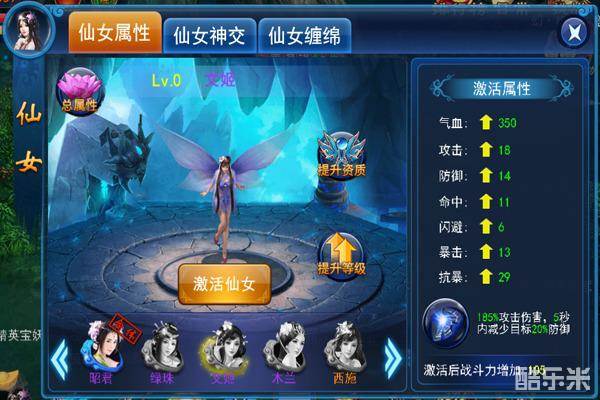 仙女激活:可获得大量属性以及该仙女附带的技能,激活仙女需使用对应的仙女召唤卡。